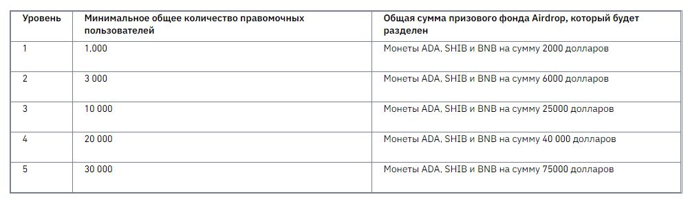 в акции пользователей мы откроем новый уровень и соответственно увеличим размер призового фонда аирдропа. Когда общее количество подходящих пользователей достигнет 30 000, общая стоимость призового фонда увеличится до 75 000 долларов.