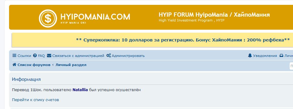 Бонус ХайпоМании - 200% от реферальной программы проекта на баланс в форуме . Для получения бонуса нужно зарегистрироваться по нашей реферальной ссылке: https://solidtradebank.com//?ref=HyipoManiaCom