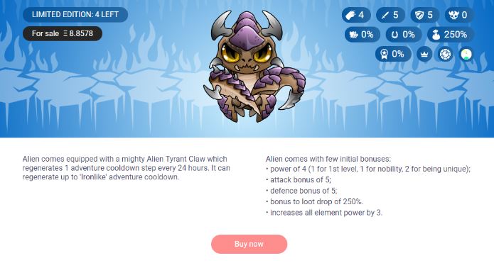 Как видите, на данный момент осталось только 4 из этих пришельцев. Каждый проданный уникальный предмет имеет определенный набор дополнительных характеристик, что дает им преимущество перед другими красотками.
