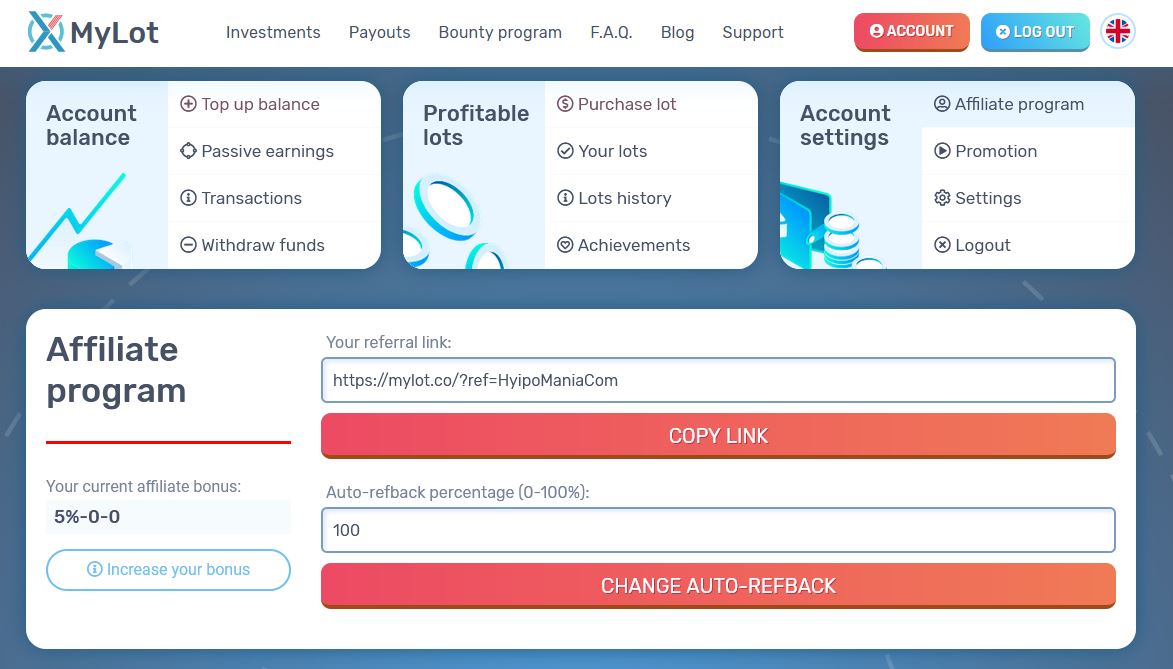 Подтверждение вывода / депозита или промо-сообщение должно содержать скриншот статистики вашего личного счета или активного лота.
