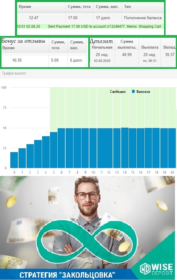 Очередная выплата в проекте WiseDeposit 30USD