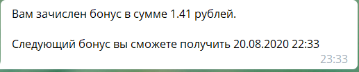 Второй бонус ежедневно через телеграмм-бот - очень удобно и приятно!