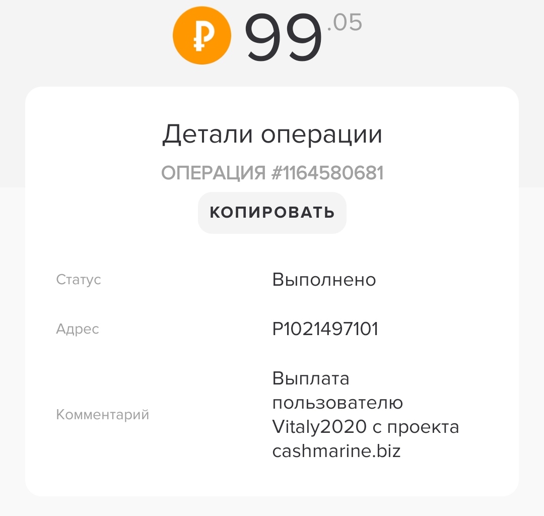 Comment: Amount: 114.99 RUB Выплата с проекта cashmarine.biz