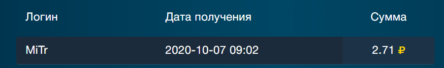 Комментарий: Выплата пользователю MiTr с проекта cashmarine biz.