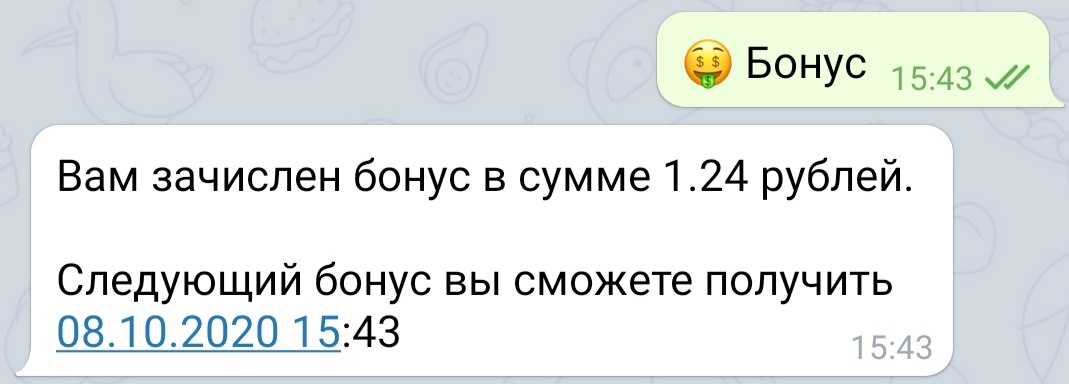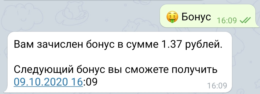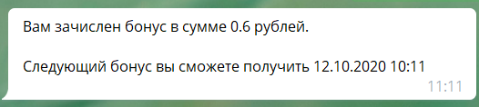Второй бонус ежедневно через телеграмм-бот - очень удобно и приятно! :grin: