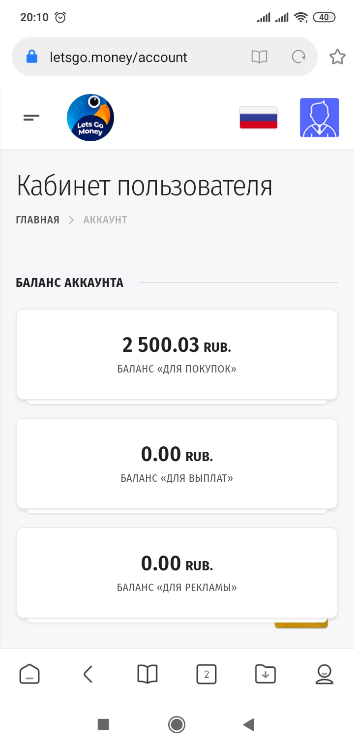 Сб окт 17, 2020 10:35 pm Received +2.38 200% рефбек по проекту Letsgo money