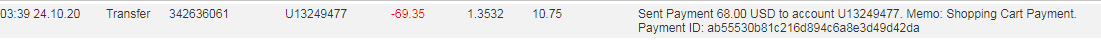 24.10.20 10:31 Received Payment 50.00 USD from account U13249477 to account U77.