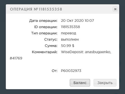 Я получил очередную выплату из проекта WiseDeposit 50 долларов! :smile: