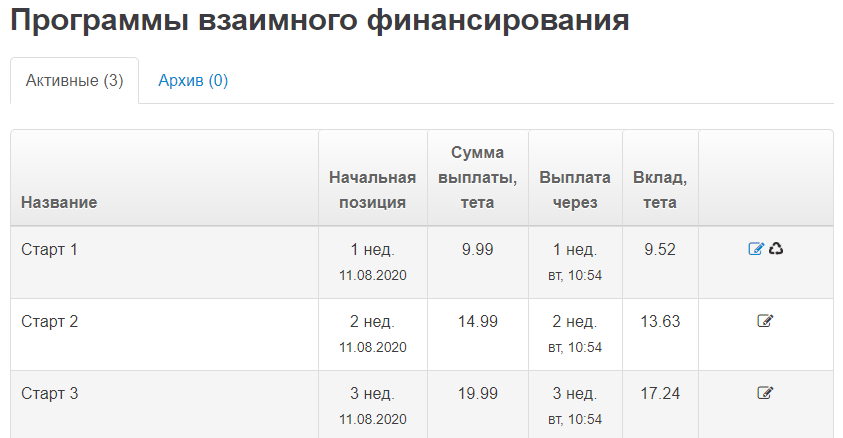 3. Поочередно делаем депозиты 1,2 и 3 недель