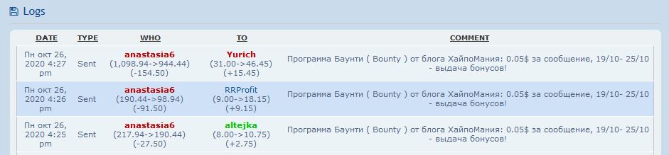 🎁 Программа Баунти ( Bounty ) от блога ХайпоМания: 0.05$ за сообщение, 19/10- 25/10 - выдача бонусов!