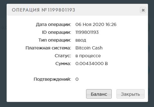 Получено ноябрь 6 2020 @5:25вечера To: My Bitcoin Cash Wallet