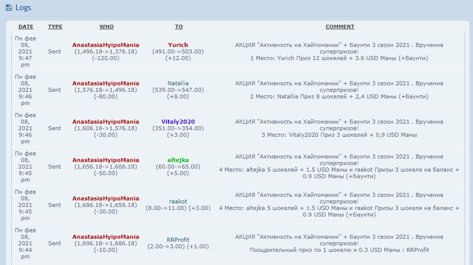 4 Место AnastasiaStrelkova , RRProfit и olnasch Призы по 2 шокеля на баланс + 0.6 USD Маны