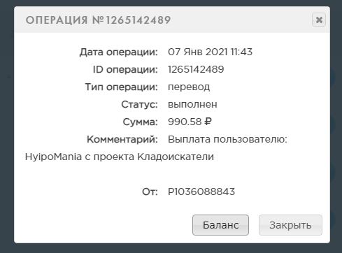 Выплата_пользователю:_raakot_с_проекта_Кладоискатели.