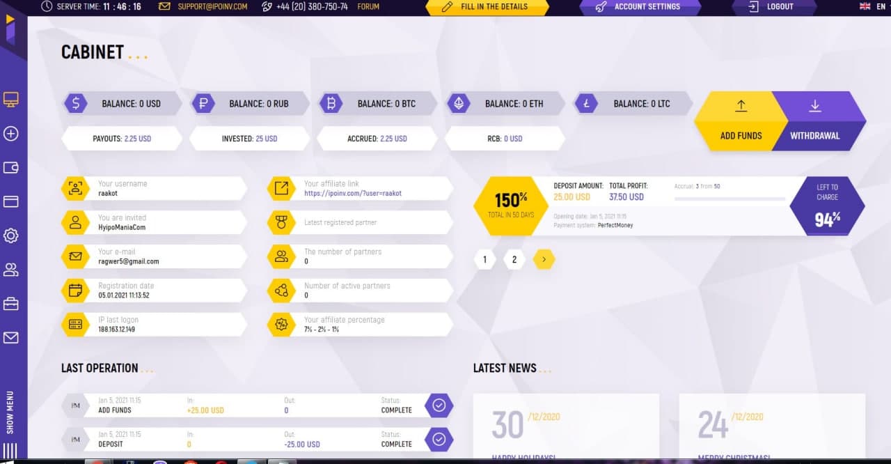 Сделал вклад в проект IPOINVEST LTD / Ipoinv Com