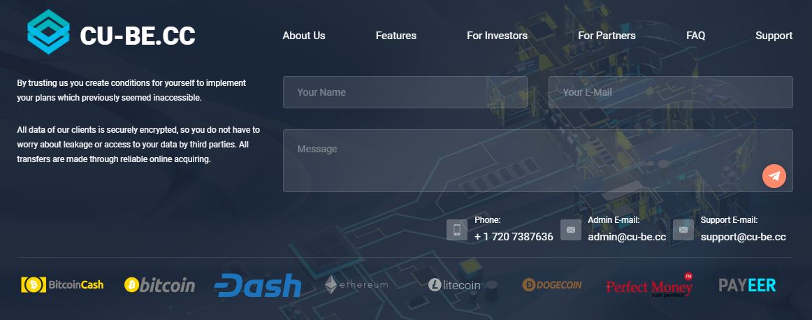 По легенде, CU-BE LLC занимается предоставлением эффективных инструментов подключения как для частных инвесторов, так и для перспективных инвестиционных проектов в США.