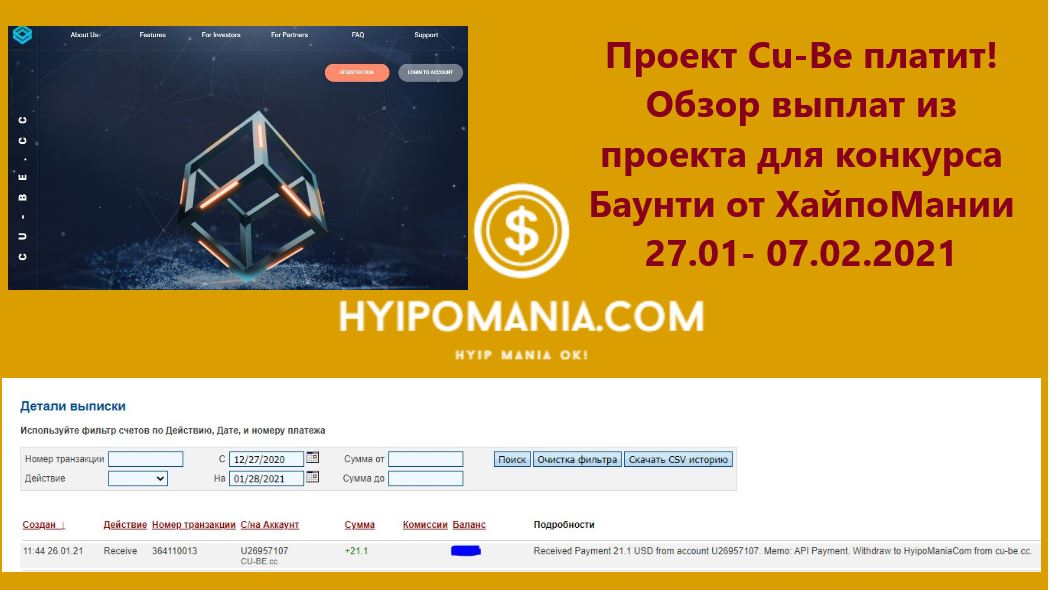 Регистрация: https://cu-be.cc/?ref=HyipoManiaCom