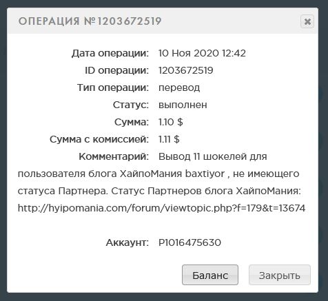 Вывод 11 шокелей для пользователя блога ХайпоМания baxtiyor , не имеющего статуса Партнера. Статус Партнеров блога ХайпоМания: http://hyipomania.com/forum/viewtopic.php?f=179&t=13674