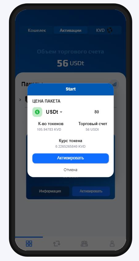 Plan 1 ( 80$ ) 56$ загружаются на биржу: еженедельный доход около 2,8$. На 24$ приобретается KVADRO token-рост до 96$ .