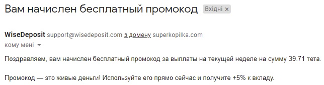 Re: WiseDeposit: 200% дохода! Бонус блога: 20% Страховка 100%