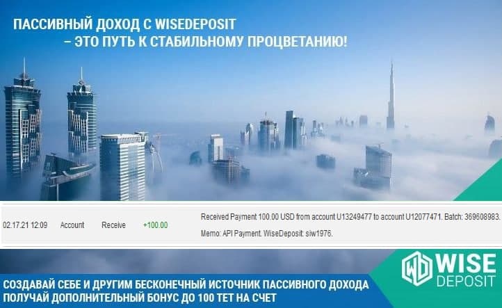 Я получил очередную выплату из проекта WiseDeposit 100.1 доллара!