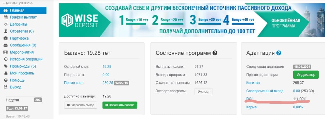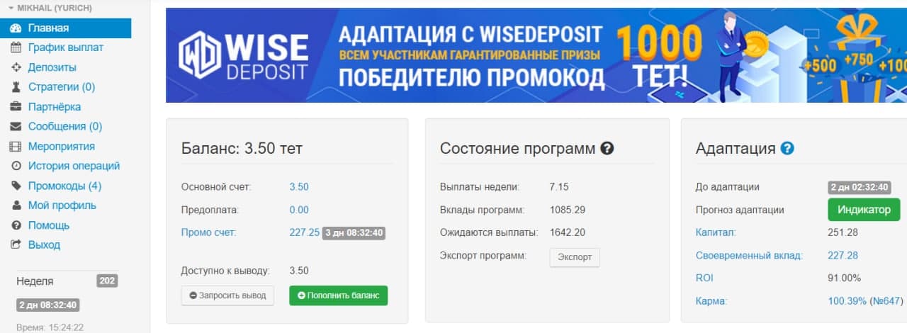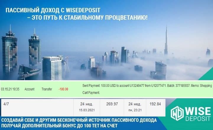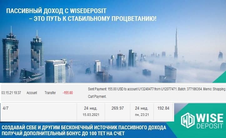 Проэкт WiseDeposit Все так же продолжает меня радовать своевременными выплатами!!
