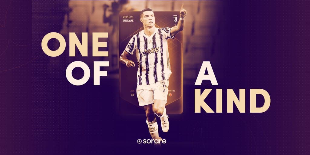 Sorare - это фэнтезийная игра в футбол, где игроки покупают, продают, обменивают и управляют виртуальной командой с помощью цифровых карточек игроков. Игра использует технологию блокчейн на основе Ethereum и была разработана в 2018 году. В 2021 на волне популярности NFT токенов расширила свою популярность, сровнявшись с американским бейсбольным аналогом - NBA. 14 марта 2021 года Unique карта проекта Cristiano Ronaldo была куплена за 150 ETH ( 237 000 € )