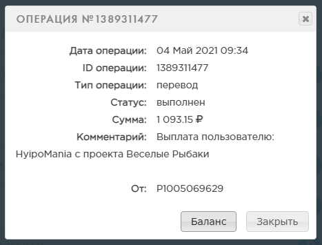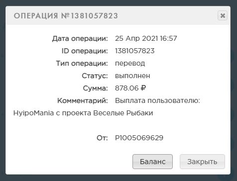Комментарий: Выплата пользователю: Evgeny80 с проекта Веселые Рыбаки