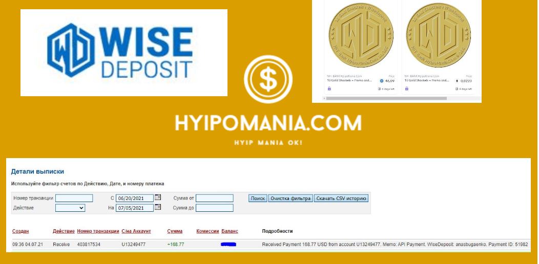 ✔️ Как получить бонусы от Wise Deposit -100 $ и от блога ХайпоМания 50 $ за один день: viewtopic.php?t=21864
