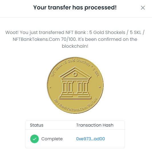 NFT Bank : 5 Gold Shockels / 5 SKL / NFTBankTokens.Com 70/100