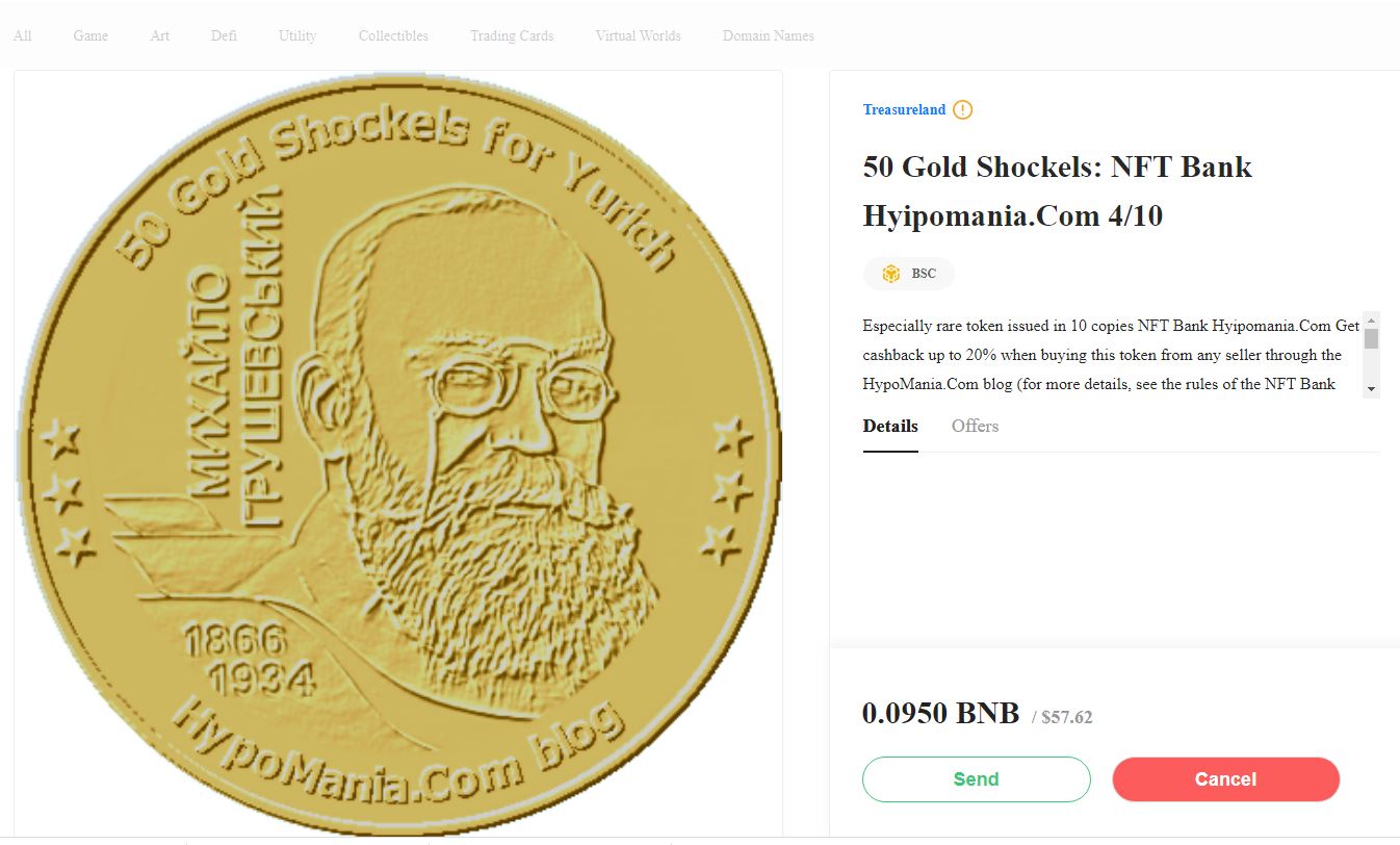 50 Gold Shockels: Mikhail Hrushevsky NFT Bank Hyipomania / Collection: 10 NFT tokens / 14/05/2021-31/07/2021 / ETH-BSC-Polygon