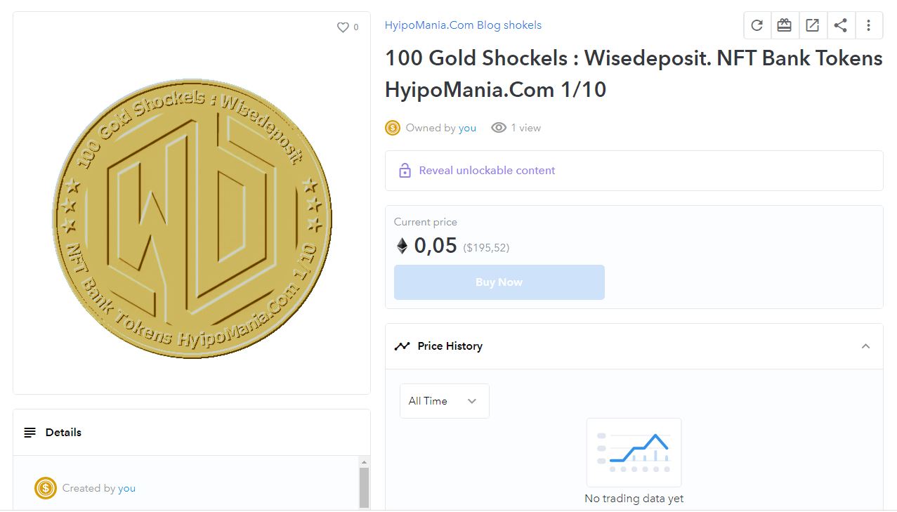 Collect 500 Shockels in NFT tokens and every month get a profit in the HyipoMania Blog Bank of 10% - issued monthly as unique NFTs with a face value of $ 50