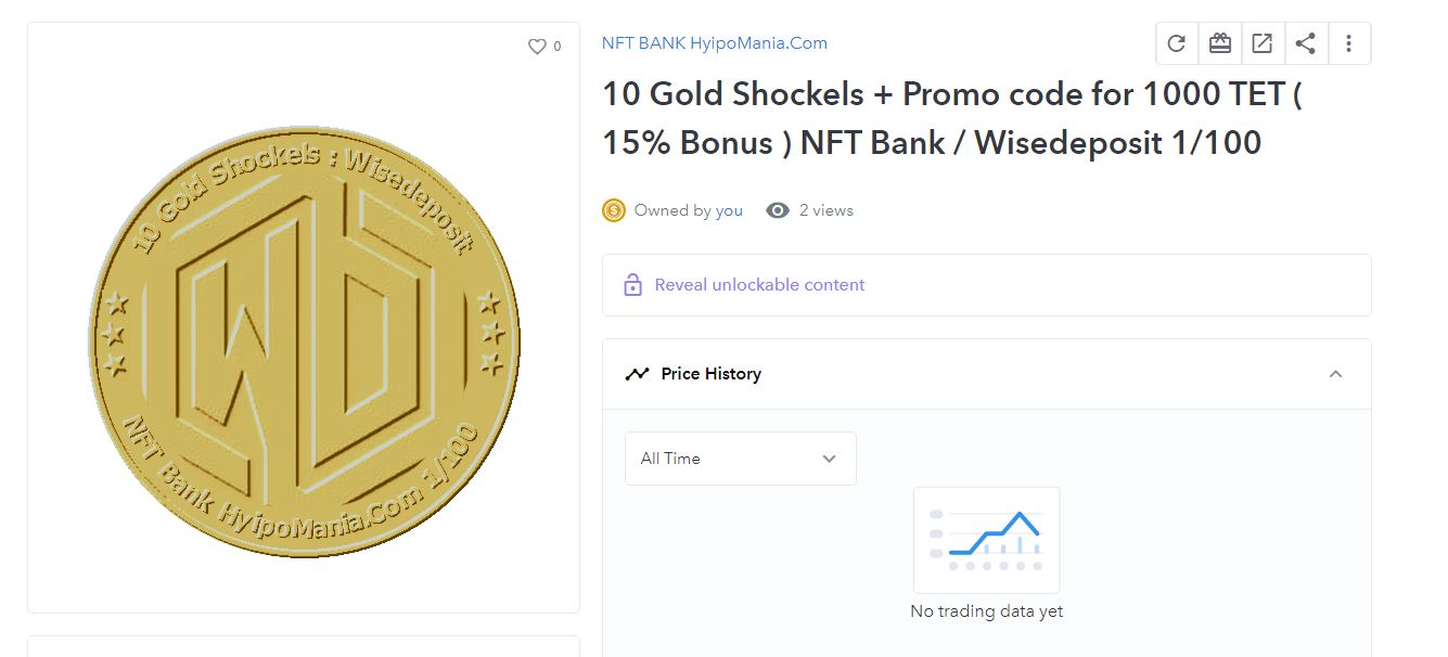 10 Gold Shockels + Promo code for 1000 TET ( 15% Bonus ) NFT Bank / HyipHunter / Wisedeposit 5/100