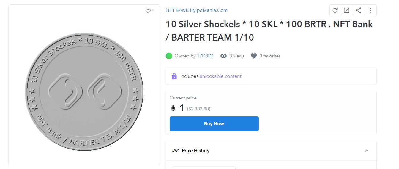 10 Silver Shockels * 10 SKL * 100 BRTR . NFT Bank / BARTER TEAM 1/10