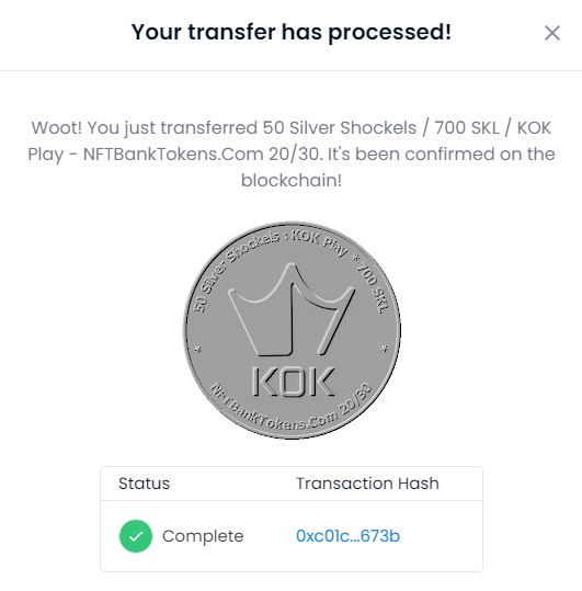 50 Silver Shockels / 700 SKL / KOK Play - NFTBankTokens.Com 20/30 номинальной стоимостью 150 USD
