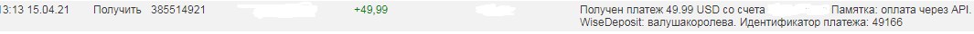 Received Payment 60.00 USD from account U13249477 to account U25515230. Batch: 379142010. Memo: API Payment. WiseDeposit: troshkinev.