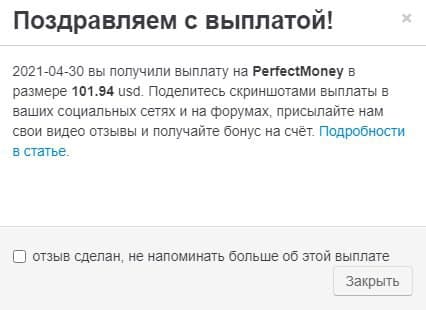 ✅- получила выплату из проекта 101,94 USD