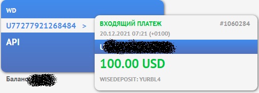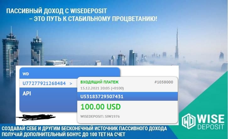Я получил очередную выплату из проекта WiseDeposit 65 долларов!