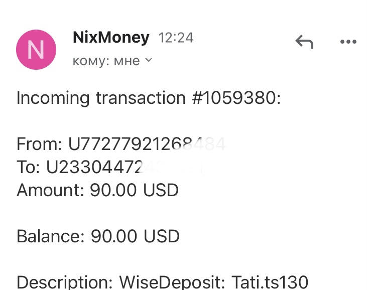 Сделала первый раз вывод 90 тет на NixMoney, заказала вывод поздно вечером, а утром деньги были уже у меня в кошельке.