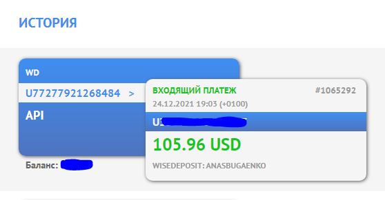 поступили на кошелек. Спасибо команде WiseDeposit!