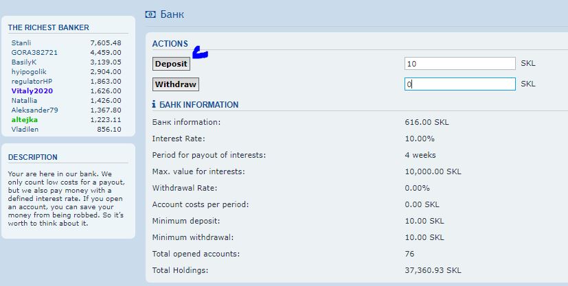 💵 Минимальная сумма пополнения Банка: 10 SKL