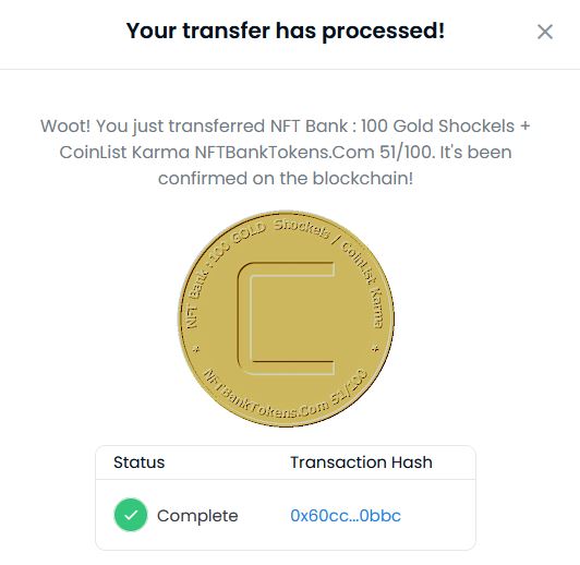 Кабинет по Закольцовке: https://hyipomania.com/forum/viewtopic. ... 93#p158993 Кабинет NFT Bank: https://hyipomania.com/forum/viewtopic. ... 00#p158000 За 169.21 GOLD SKL + доплата 123.16 SKL + 30.79 USD Маны куплена Резервация +2% ( всего 9% ) дохода от проекта CoinList бессрочно через пул NFT Bank + CoinList Karma ( https://t.me/hyipomania_chat/54578 ) + 2 NFT токена NFT Bank : 100 Gold Shockels + CoinList Karma Кабинет NFT Bank: viewtopic.php?p=158177#p1 58177 Тема по CoinList на ХайпоМании https://hyipomania.com/forum/viewtopic.php?t=21993 При демонстрации скрина 100% кармы гарантирован бонус на акции "Адаптация-9" 20.03.2022