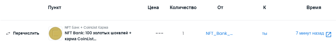 Уже закупленные токены в пуле NFT Bank + CoinList