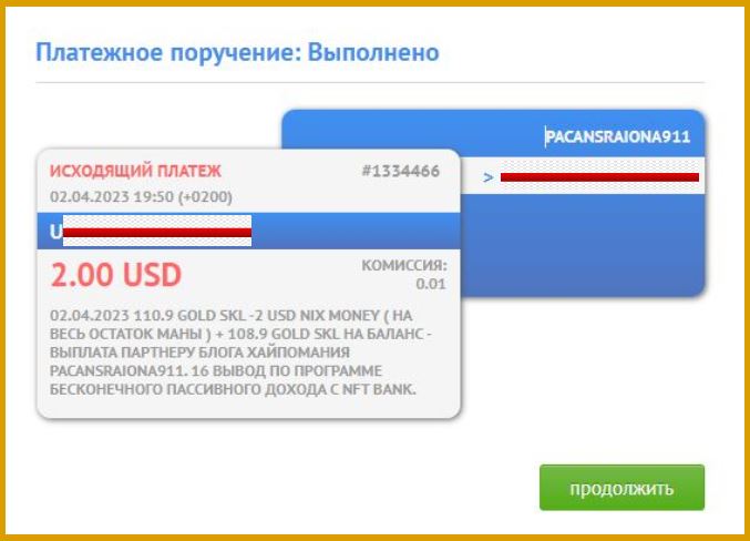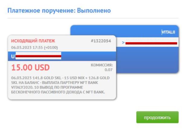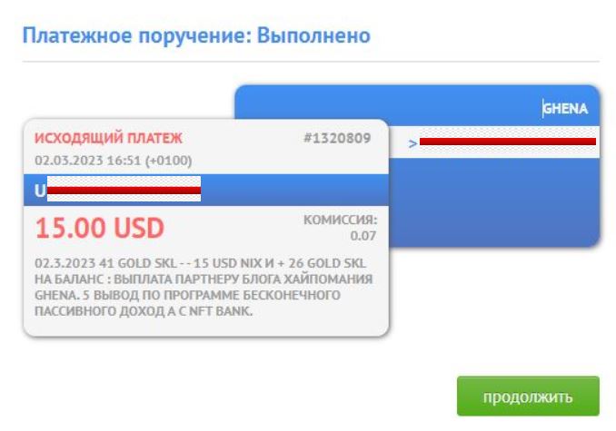 Вывод по закольцовке NFT Bank для Milena2021 , Aidar , Ghena на внешний кошелек Nix Money - до 45 USD ( до 15 выведено в марте )
