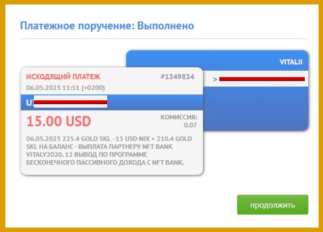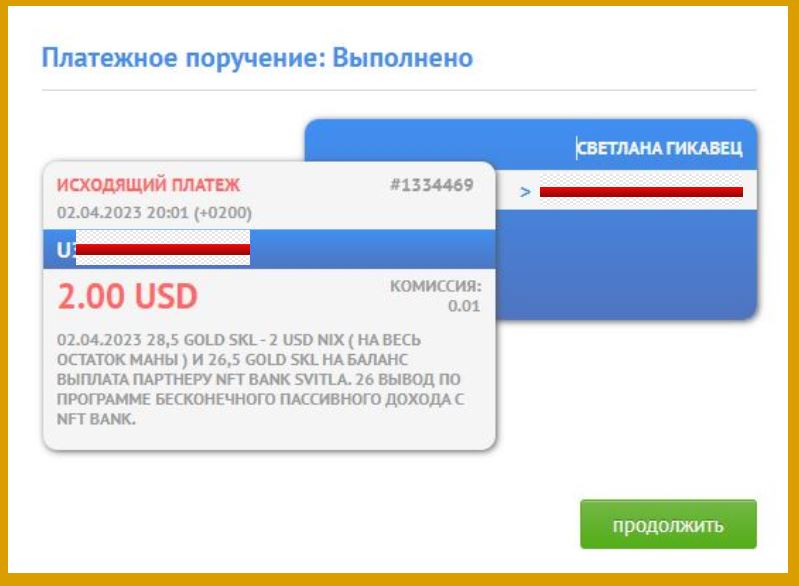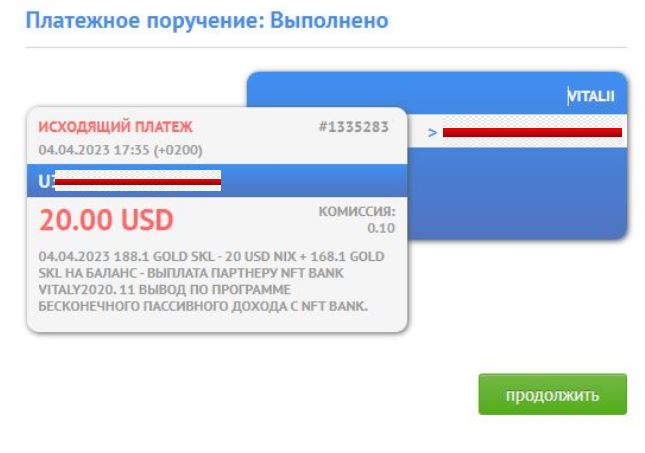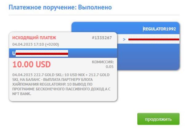 Вывод по закольцовке NFT Bank для Milena2021 , Aidar , Ghena на внешний кошелек Nix Money - до 45 USD ( до 15 выведено в марте )