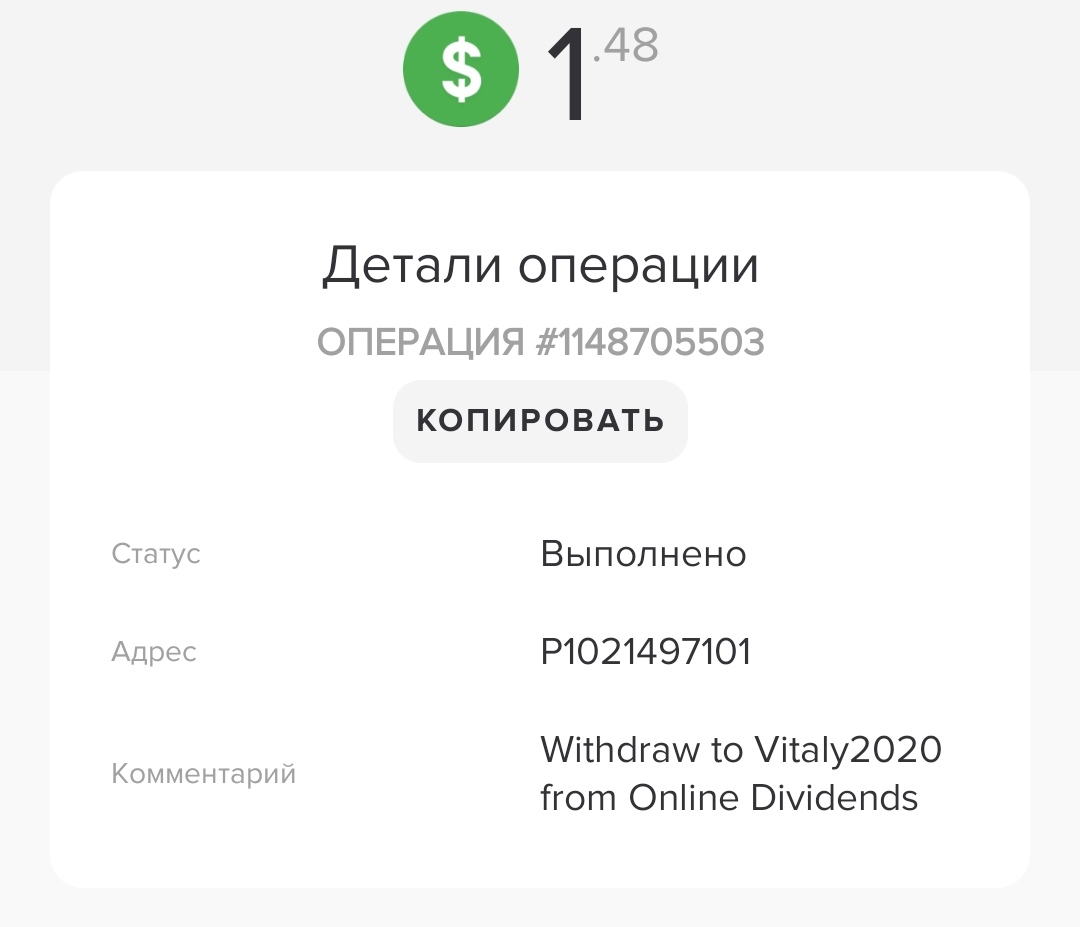 The amount of 0.1 USD has been deposited to your account. Accounts: U21921555->U20. Memo: API Payment. Withdraw from Online Dividends.. Date: 22:28 14.09.20. Batch: 334405348. Инвестирую с блогом Hyipomania.