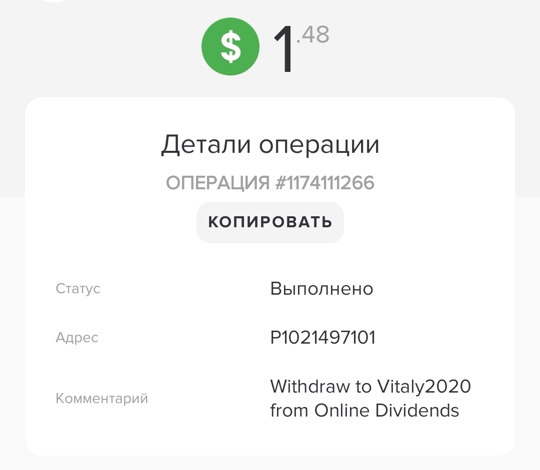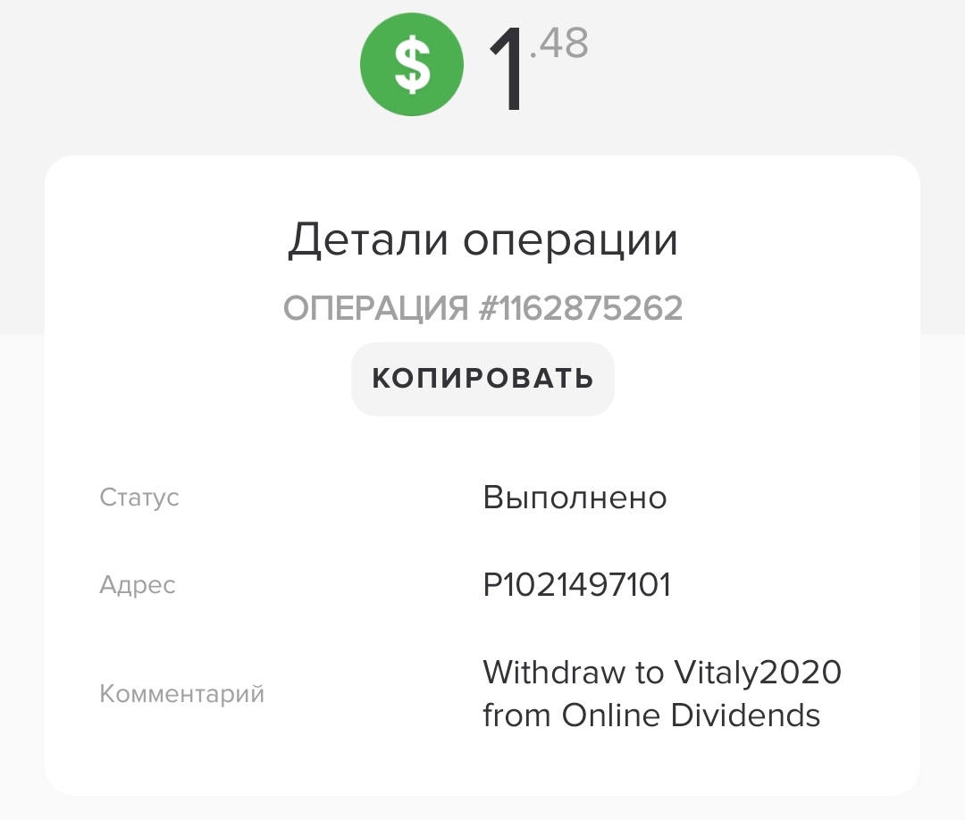 Withdraw to Vitaly2020 from Online Dividends