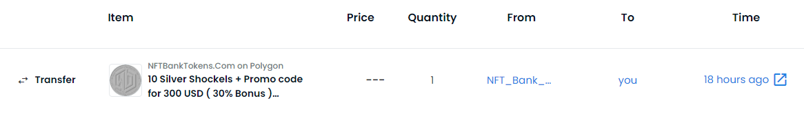 Приобрел очередной NFT 10 Silver Shockels + Promo code for 300 USD ( 30% Bonus )