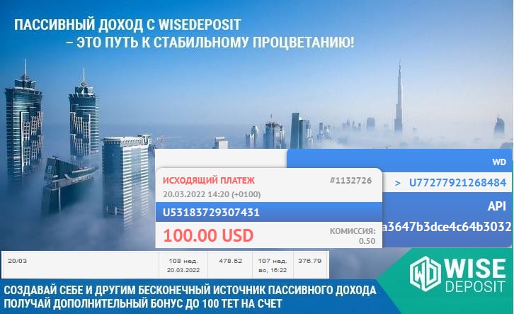 Re: WiseDeposit: 200% дохода! Бонус блога: 20% Страховка 100%