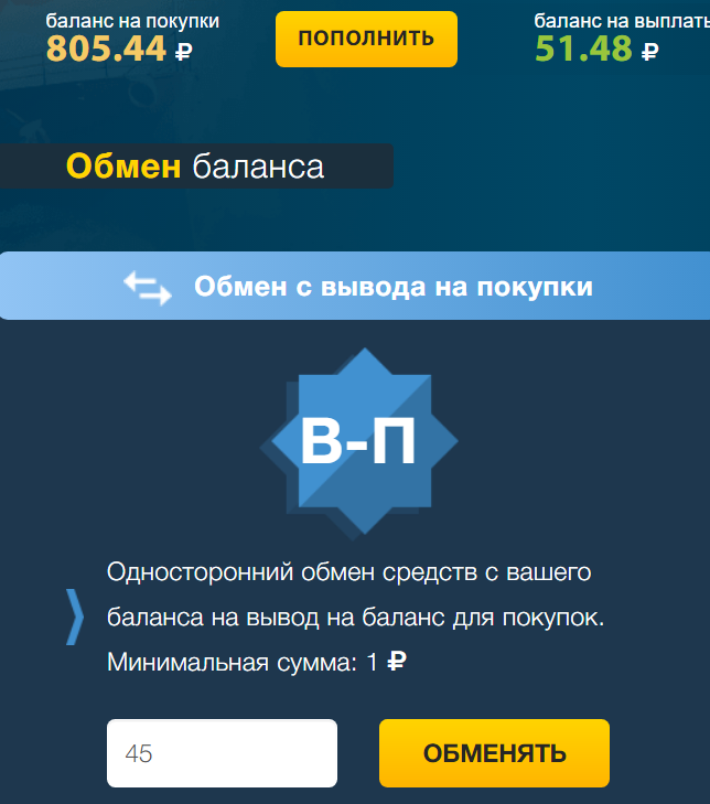 Сделал реинвест в проекте - обмен баланса на вывод на баланс для покупок 45руб.!
