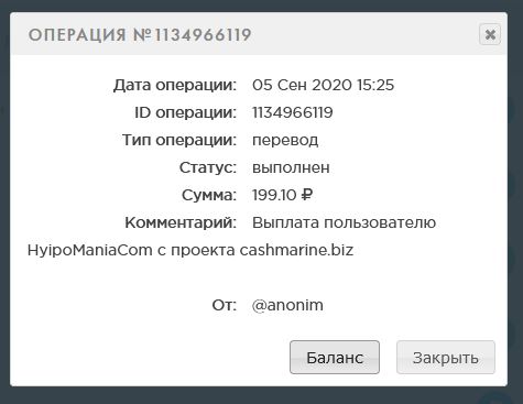 https://cashmarine.biz/?u=Vitaly2020 ) с доходом 110-145% и 200% рефбеком от блога ХайпоМании - платит! Постинг выплат на блоге ХайпоМания до 0.1 дол за сообщение.